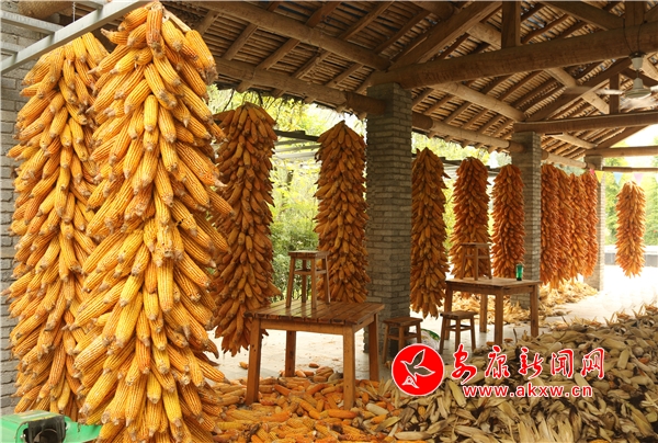 辛勞了大半年的村民,面對(duì)掛滿庭院的金色玉米,掩不住內(nèi)心豐收的喜悅和滿意的笑容。