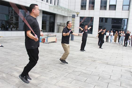 當(dāng)然比賽中還有許多“小插曲”,有的選手鞋帶松了,有的選手繩子扭了,有的選手眼鏡掉了,有的選手被大繩打到疼得哇哇叫,但正是因?yàn)橛辛诉@些小插曲,才讓參與者的笑聲更響,讓這場(chǎng)比賽變得更生動(dòng)有趣,也讓“快樂工作、幸福生活”這句話有了最真實(shí)的體現(xiàn)。