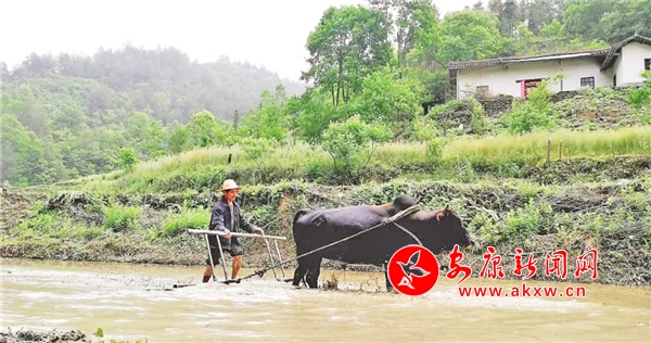 聽說要請他給我們講恒口貢米的故事,他煞有介事地愣了愣,說帶我們?nèi)ヌ镩g看看,再講。過了春分,耕種的土地上,我們感受到的是“農(nóng)家少閑月,五月人倍忙”的景象!在這里,沒有轟隆隆的機器聲,只用耕牛犁田,育苗平整,農(nóng)忙的身影在正暖的春陽與如織的細雨中穿梭。
