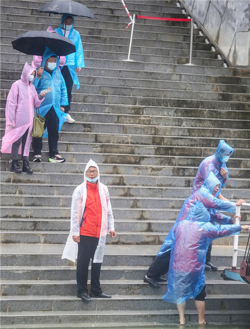 為了游客的人身安全,瀛湖景區(qū)交運公司的員工一直留意漸長的水位,每隔一個小時就要將躉船連接口鐵板上升三四個臺階。與此同時,工作人員還成立了搶險救援工作小組,隨時應對突發(fā)事件,確保節(jié)日期間的船舶營運萬無一失。?