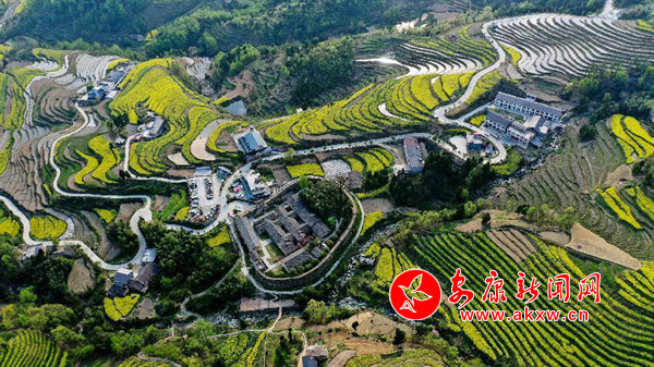 三三兩兩的房屋,就掩映在層疊的菜花梯田間,潔白的墻面,黛青的屋瓦,金燦的菜花,有種遺世獨(dú)立的靜美,塵世的喧囂一下子就遠(yuǎn)了。尋一條鄉(xiāng)野小徑,步入茫?;ㄌ镩g,不時(shí)有蜂蝶流連,孩童嬉鬧,農(nóng)人牽著牛自不遠(yuǎn)的長橋上悠悠走過,處處都流淌著鄉(xiāng)村田園的盎然春意。