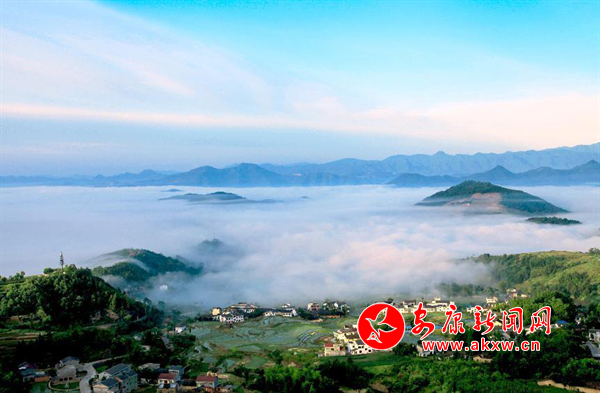在茫茫山野間,在縹緲云霧間,上萬株桃花好似一夜怒放,大片大片粉白染遍了山頭,宛如一場(chǎng)朦朧的夢(mèng)。