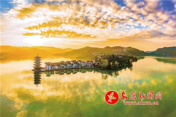 在瀛湖,冬日里的暖陽往往午后才露出羞澀的笑臉。聽說清泉老碼頭新打造了一座古香古色的小鎮(zhèn),與四周的群山和這里的大湖面渾然一體,美麗壯觀。11月下旬的一個下午,待云霧慢慢散開,我和紀平、世軍驅(qū)車來到清泉老碼頭。過去,這個碼頭是跨漢江通往玉嵐的必經(jīng)之地,也是嵐河與漢江的交匯處?;鹗瘞r電站大壩蓄水后,這里呈現(xiàn)出瀛湖最開闊的湖面,螺峰島、翠屏島、玉興島、五龍山等形成了四面環(huán)水的島嶼,清泉、玉嵐、橋興、關(guān)埡子、紅巖堡、南溪溝、任家灣等地縱橫交錯,形成了諸多形態(tài)各異的半島。水位升至最高時,“腰帶”消失,山與水渾然一體,與綿延的山勢溫柔相依。此時山頭已是草木蕭疏,只剩下光禿禿的樹枝了,而瀛湖兩岸卻秋意正濃,山坡上的紅黃綠像是被打碎了的調(diào)色盤,洋洋灑灑,帶著幾分溫潤嵌入山坡、映入湖中,在藍天白云的映襯下,宛如一個童話世界。忽然,一艘游船駛過,五彩斑斕的倒影頃刻被攪拌成彩色綢緞,任其在湖中翻滾飄蕩。夕陽劃過山頭的那一刻,紅霞漫天,湖面被染成橘色之后,一片寂靜。只有此時,山之沉穩(wěn)端莊和水之嫵媚溫柔交融一體,呈現(xiàn)出無與倫比的美。我想,這不正是我想要的那幅極具詩情畫意的場景嗎?有感: