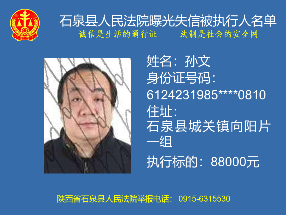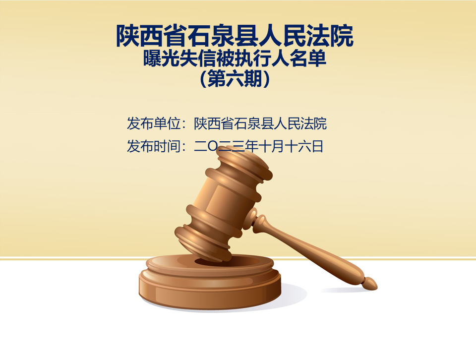 曝光失信 | 石泉縣人民法院曝光失信被執(zhí)行人名單(2023年第六期)