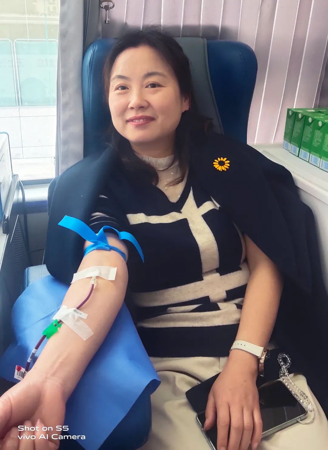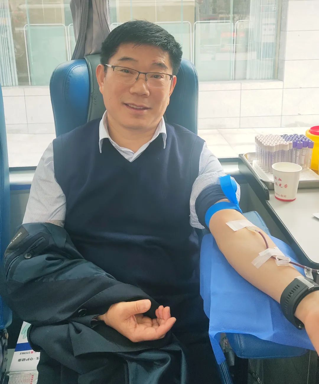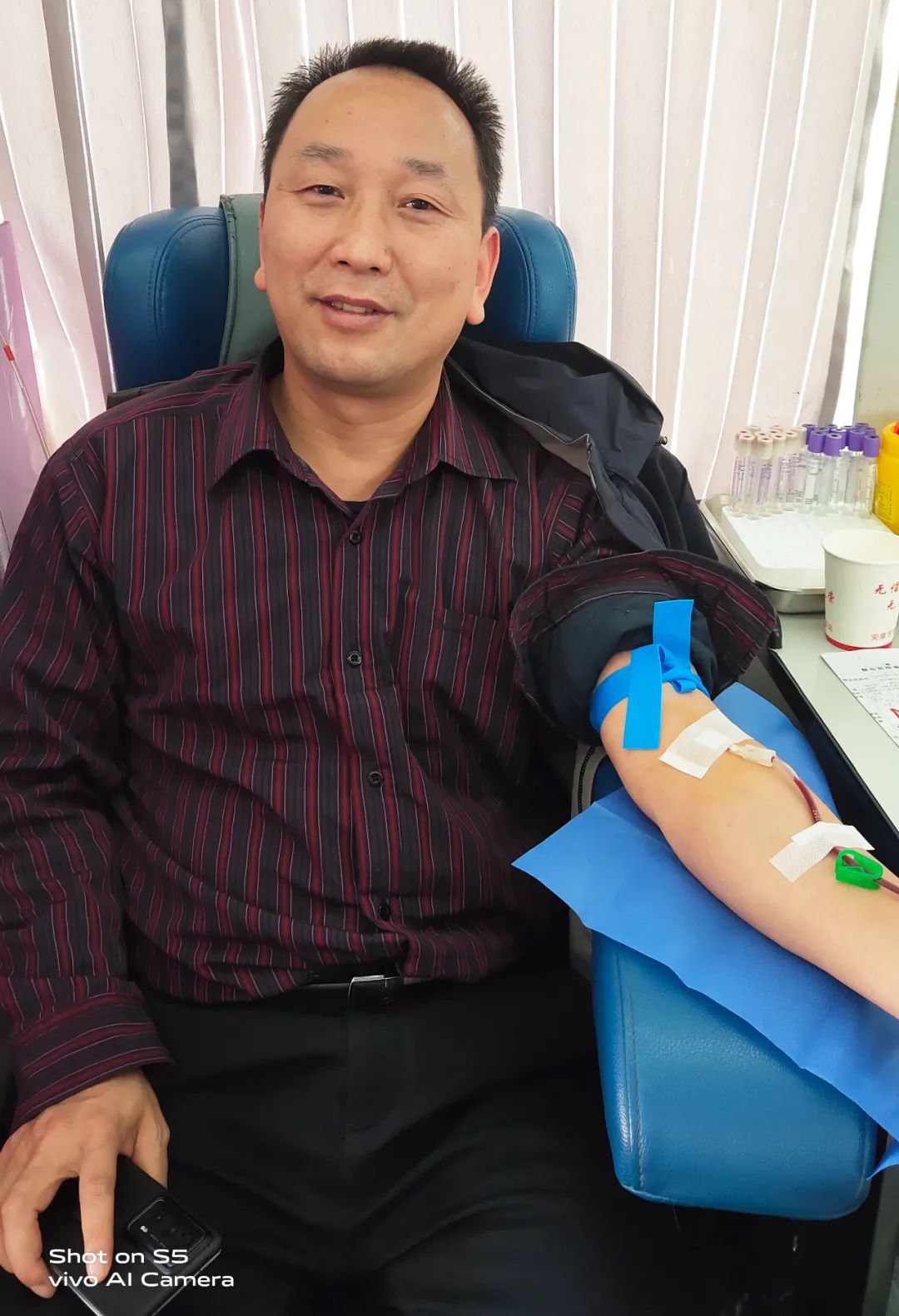 黨辦主任李子梅笑著說(shuō):“我一直想獻(xiàn)血,前幾次因?yàn)樯眢w原因沒(méi)有獻(xiàn)成,還特別遺憾,這次檢測(cè)符合獻(xiàn)血標(biāo)準(zhǔn)后我特別高興,作為醫(yī)務(wù)工作者,能夠?yàn)闊o(wú)償獻(xiàn)血事業(yè)貢獻(xiàn)自己一份微薄的力量,這很有意義?!?/p>