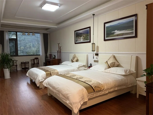 銘揚(yáng)酒店坐落于廟山寨景區(qū)內(nèi),依托景區(qū)內(nèi)的自然資源,建成集觀光旅游、娛樂健身于一體的康養(yǎng)民宿綜合體,可提供床位25個(gè)。