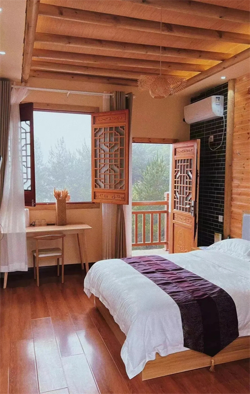 快活嶺民宿依山而建,來到這里,收盡山光水色,古樸而現(xiàn)代,簡(jiǎn)約大方,讓您盡情暢游于山水之間。