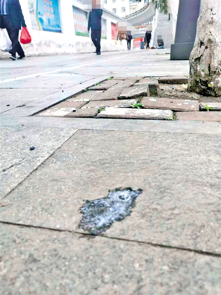 3月26日,有市民在安康中心城區(qū)馬坎天橋附近隨地吐痰。記者 潘潤生 攝