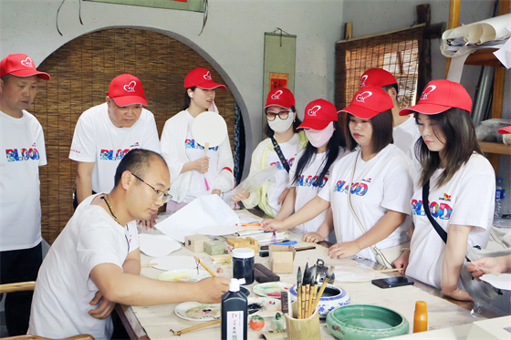 下午,大家來到石泉縣中壩作坊小鎮(zhèn),制作漆扇、泥塑,體驗傳統(tǒng)手藝的樂趣,感受非遺文化的魅力。拓展游戲環(huán)節(jié),全體隊員按照教練指令進(jìn)行分組,兩人三足、跳大繩等趣味活動,既鍛煉了團(tuán)隊的默契度,也增進(jìn)了相互間的了解。