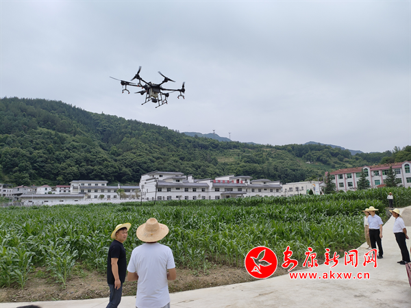 本網(wǎng)訊(通訊員 杜韋慰 李苗)時(shí)值仲夏,氣溫升高,降水增多,鎮(zhèn)坪縣玉米如雨后春筍拔地而起,長(zhǎng)勢(shì)良好,豐收在望。玉米蟲害也隨之呈現(xiàn)出高發(fā)態(tài)勢(shì),眼下進(jìn)入夏糧管理的關(guān)鍵時(shí)期。鎮(zhèn)坪縣農(nóng)業(yè)技術(shù)推廣站為確保糧食穩(wěn)產(chǎn)增收,積極開展玉米大豆病蟲害監(jiān)測(cè)調(diào)查和病蟲害防控工作,防病蟲、減損失、保增產(chǎn),強(qiáng)化玉米大豆病蟲害防治。在曙坪鎮(zhèn)戰(zhàn)斗村農(nóng)科所玉米良種試驗(yàn)田里,農(nóng)技人員正在用飛防無人機(jī)對(duì)害蟲進(jìn)行防治防控作業(yè)。