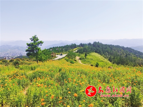 現(xiàn)在的牛蹄嶺已然成了安康城區(qū)市民休閑納涼的好去處,特別是下午夕陽(yáng)西下時(shí),大量人群涌入到牛蹄嶺景區(qū),在興賢塔向東一百米左右,穿過(guò)彩虹柏油路便可抵達(dá)一大片萬(wàn)壽菊競(jìng)相綻放的花海,花團(tuán)錦簇的場(chǎng)景引得路人駐足觀賞、打卡留影。徜徉在花海、藍(lán)天、白云、微風(fēng)、蟲(chóng)鳴組合而成的風(fēng)景里,身心都倍感愉悅。在這里不僅可以看到花海,站在觀景臺(tái)遠(yuǎn)眺,安康城區(qū)的景色也可一覽無(wú)余。待到夕陽(yáng)西下時(shí),與夕陽(yáng)、花海合影留念,頗有“滿城盡帶黃金甲”之感。