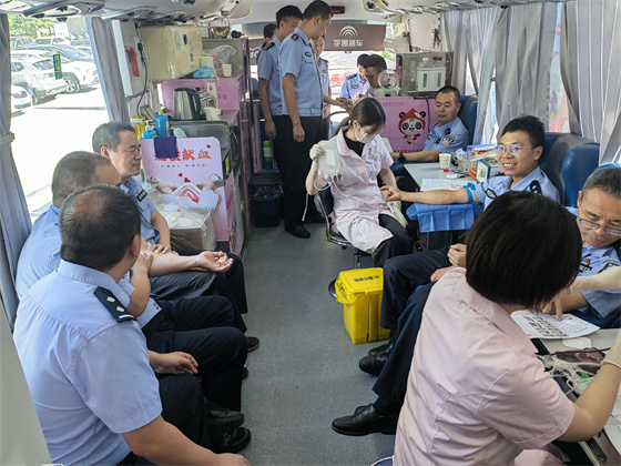 活動(dòng)現(xiàn)場,參與獻(xiàn)血的公安干警們早早來到獻(xiàn)血點(diǎn),在醫(yī)護(hù)人員的指導(dǎo)下,認(rèn)真填寫獻(xiàn)血登記表,依次接受健康征詢、血液初篩檢查、現(xiàn)場采血等流程。鮮紅的熱血順著導(dǎo)管緩緩流出,匯聚成了一份份愛心,每個(gè)人的臉上都洋溢著堅(jiān)定和自豪。