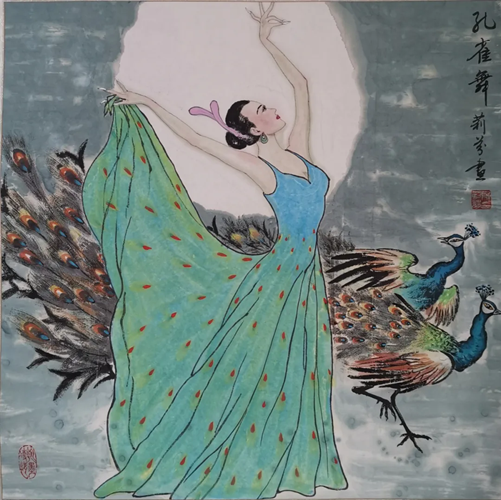 解大姐是陜北人,性格開朗、直率,說話中間或帶出一些濃重的陜北口音。雖說她主業(yè)從于政界,但她微笑的背后卻潛藏著不可掩飾的藝術天賦,揮發(fā)著令人奪目的藝術才情。繁雜的政務工作之余,她創(chuàng)作不輟,堅持不懈,居然在多個藝術門類收獲頗豐,好評連連。寫小說,她寫出幾十萬字的長篇出版發(fā)行;寫劇本,竟拍成了電影予以公映;學國畫,亦讓藝術界的大咖贊口不絕。我雖不才,空有浮名,但深耕藝界多年,對于其中的好賴還能分出一二。我感到,一個人的人品和藝品基本一致,解大姐的藝術,是扎根于她熟悉的陜北大地的藝術,是生長在山峁峁上經歷風霜雨雪的藝術,就像那陜北倔強的疙瘩柳,散發(fā)著對土地對生活的親近和熱情,對人生價值實現(xiàn)的不屈和追求??吹剿膰嬓伦鳎嘘儽奔艏埖让耖g藝術的滋養(yǎng)和影響,真切而樸實。她的飛天人物系列,泥古而不落窠臼,使我想到疙瘩柳條隨風擺動的婀娜風姿,溫溫潤潤,令人遐思和向往;她的花鳥畫作,使我想到陜北山野一片蒼茫之間,一朵兩朵盛開的山丹丹花,嬌艷得令人不忍觸手;她的山水畫作,又猶如陜北山原上嫩黃的棗花,洋溢著撲面而來的質樸、清新和率真之氣。