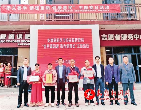 本網(wǎng)訊(通訊員 汪章飛)為營(yíng)造向上向善的社會(huì)文明風(fēng)尚,10月11日,高新區(qū)汪槽村聯(lián)合包聯(lián)單位高新區(qū)市場(chǎng)監(jiān)管局、高新醫(yī)院、陜西萊安客商貿(mào)有限公司舉行“孝義善舉·情暖重陽(yáng)”暨“孝義之星”“孝義之家”授牌活動(dòng)。