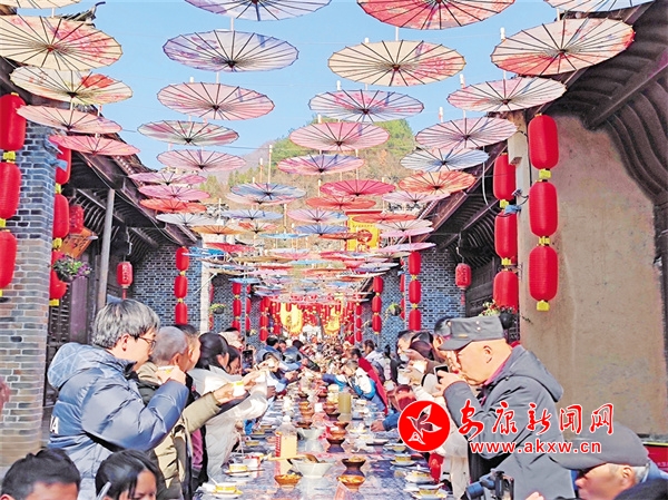 “觀眾朋友們大家好,這里是雙河口古鎮(zhèn),歡迎大家來到庖湯桌宴的活動現(xiàn)場!”冬季庖湯長桌宴的舉辦地,是修葺一新的驛道文化廣場,游客在這里觀看精彩的文藝節(jié)目,品嘗本土特色美食,欣賞茶馬古道歷史浮雕,品味雙河口魅力故事。該項目是2024年7月19日洪災后,為修復損壞的護坡,依托現(xiàn)有地形條件,盤活原有閑置資源重新改造的文化廣場項目,于當年10月1日建成投用。項目建成后,古鎮(zhèn)的景區(qū)框架拉得更寬,文化活動載體變得更大,文化內(nèi)容展示更加生動,配合12月31日建成投用的省級鄉(xiāng)村振興示范鎮(zhèn)展陳室項目,雙河口的歷史文化和人文故事變得可感可知,成為古鎮(zhèn)一處新的地標性“打卡地”。