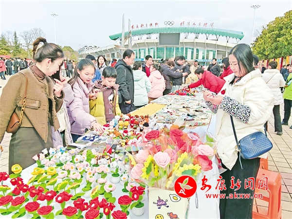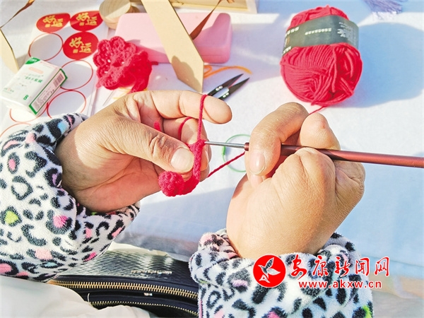 今年春節(jié)期間,胡運翠接到了漢濱區(qū)文化館的電話,邀請她去金州廣場非遺展示區(qū),展示她的手工編織作品,同她的作品一同列入展示的還有花饃、糖畫、手工竹節(jié)人等。她精心準(zhǔn)備了許多手工編織品,在金州廣場右側(cè),胡運翠的攤位前圍滿了小朋友,他們被這些栩栩如生的小動物深深吸引,紛紛拉著家長購買。胡運翠一邊熱情地向顧客介紹自己的作品,一邊現(xiàn)場編織,嫻熟的手法引得眾人連連稱贊。