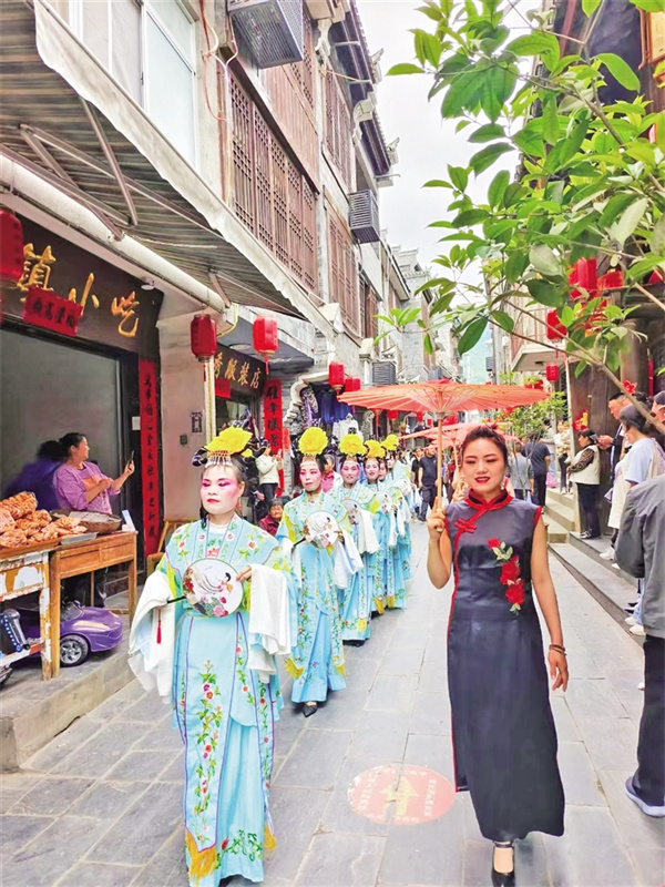 “過去總說‘捧著金飯碗要飯’,現(xiàn)在我們讓老手藝成了新飯碗?!惫沛?zhèn)“裕慶和”店面里,負責人李俊沏上一壺富硒茶,忍不住發(fā)出感嘆。這位扎根故鄉(xiāng)創(chuàng)業(yè)傳承非遺的“領(lǐng)頭雁”,將祖?zhèn)鞯陌舜蠹缦蛟斐闪裂勖K_發(fā)的“古鎮(zhèn)兩日游”線路,將美食體驗與民宿客棧、茶社書院有機結(jié)合,年接待游客上萬人次。