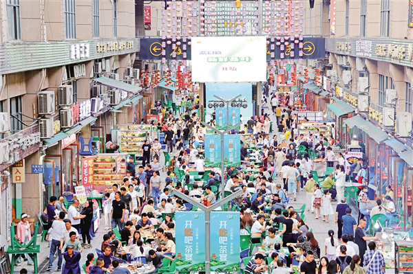 “五一”期間,紫陽(yáng)縣紫邑新城美食街區(qū)開展了特色文旅活動(dòng),吸引游客紛至沓來(lái)。 鄭曉虎 攝