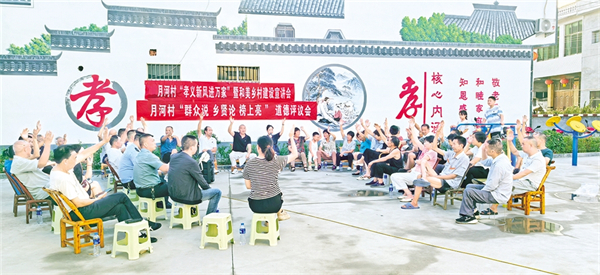 道德評議會上村民們講述孝義故事,感受榜樣力量。