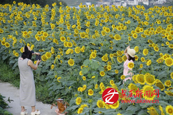 夏日時(shí)節(jié),嵐皋縣城關(guān)鎮(zhèn)茅坪村眾達(dá)現(xiàn)代農(nóng)業(yè)園區(qū)百畝油葵種植基地正絢麗綻放。一眼望去,金燦燦的向日葵“花?!痹陉柟獾恼找蚂陟谏x,繪就了一幅色彩斑斕的夏日畫卷,吸引了許多市民和游客。近年來,嵐皋縣高度重視文旅產(chǎn)業(yè)發(fā)展,緊緊圍繞“旅居鄉(xiāng)村”發(fā)展,注重發(fā)掘鄉(xiāng)村產(chǎn)業(yè)旅游價(jià)值,通過產(chǎn)業(yè)、項(xiàng)目等資源整合,大力發(fā)展鄉(xiāng)村休閑觀光旅游,煥發(fā)鄉(xiāng)村產(chǎn)業(yè)發(fā)展動力,持續(xù)賦能鄉(xiāng)村振興。(通訊員 廖霖)