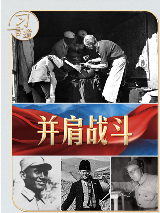 印度醫(yī)生柯棣華、法國醫(yī)生貝熙葉、德國人約翰·拉貝、丹麥人辛德貝格、英國人林邁可、國際主義戰(zhàn)士漢斯·希伯、蘇聯(lián)飛行大隊(duì)長庫里申科、美國“飛虎隊(duì)”......他們的事跡,習(xí)近平總書記曾多次動情講述??倳涍€在國內(nèi)外重要場合為曾幫助和支持中國抗戰(zhàn)的國際友人頒獎,向他們致敬。