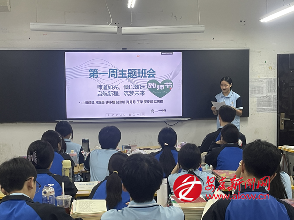 在主題班會上,各班以視頻短片和點滴故事再現(xiàn)了師生之間的感人瞬間,學(xué)校還通過LED亮燈、更換宣傳欄等方式,宣傳優(yōu)秀教師的奮斗足跡和崇高精神。學(xué)生會自發(fā)制作教師節(jié)宣傳視頻,并在廣播站播發(fā)致敬教師的文章,號召全體學(xué)生要尊重老師、感恩老師、理解老師,自立自強、充實學(xué)識、增強本領(lǐng),長大后回饋社會、報效國家。