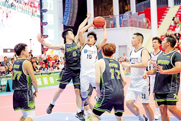 安康企協(xié)桃花源代表隊(duì)在外籍球員CJ·特羅特和賈森·漢尼拔的帶領(lǐng)下一度領(lǐng)先12分,南宮山代表隊(duì)球員在主力隊(duì)員梁歡、朱思禹先后受傷的不利局面下,由彭博帶領(lǐng)球隊(duì)艱難咬住比分。距離全場(chǎng)比賽結(jié)束9.8秒,南宮山代表隊(duì)3號(hào)隊(duì)員李子豪外線(xiàn)一記精準(zhǔn)的3分把比分追至78平,這是兩隊(duì)比分首次打平。CJ·特羅特后場(chǎng)接球,直插籃下,轉(zhuǎn)身后仰,將比分反超2分,留給南宮山隊(duì)3.2秒。南宮山代表隊(duì)4號(hào)球員彭博一記長(zhǎng)傳跨過(guò)半場(chǎng),精準(zhǔn)找到了6號(hào)球員韓邦,上籃,80分平,加時(shí)賽,球場(chǎng)響起山呼海嘯的歡呼。加時(shí)賽中,南宮山代表隊(duì)用一次次精準(zhǔn)的投籃、拼盡全力的防守,最終以93:88的比分奪得冠軍。