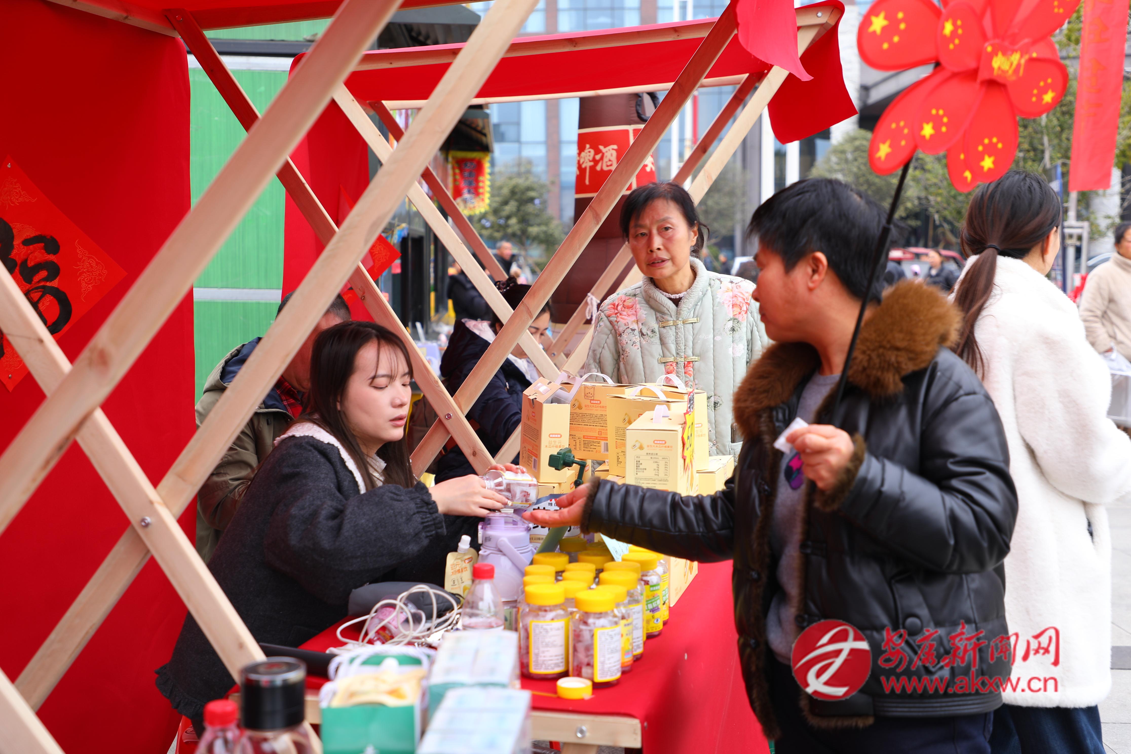 舞臺(tái)之上好戲連臺(tái),集市之中更是熱火朝天。年貨展銷區(qū)內(nèi)攤位林立、人潮涌動(dòng),20余家企業(yè)帶來(lái)的安康富硒茶、紅薯粉條、木瓜飲、土蜂蜜、黃連牙膏等安康特色產(chǎn)品琳瑯滿目,讓人目不暇接?!奥?tīng)了攤主講解茶山生態(tài)和制茶工藝,感覺(jué)買得特別踏實(shí),帶回去自己喝或當(dāng)作新年伴手禮都合適,能實(shí)實(shí)在在支持本地茶農(nóng),這年貨買得暖心又有意義?!笔忻窳蜗壬嶂鴦傎?gòu)入的茶葉笑著說(shuō)。