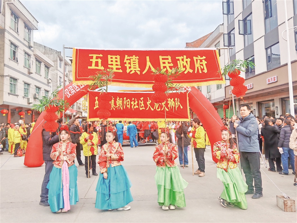 展演結(jié)束后,火龍、火獅和采蓮船等展演隊(duì)伍也被五里工業(yè)集中區(qū)企業(yè)邀請(qǐng)進(jìn)行表演。在鏗鏘鑼鼓聲中,歡騰民俗在現(xiàn)代化廠(chǎng)區(qū)生動(dòng)呈現(xiàn),職工們駐足觀(guān)看、掌聲不斷,處處洋溢著喜慶祥和、昂揚(yáng)向上的濃厚氛圍。