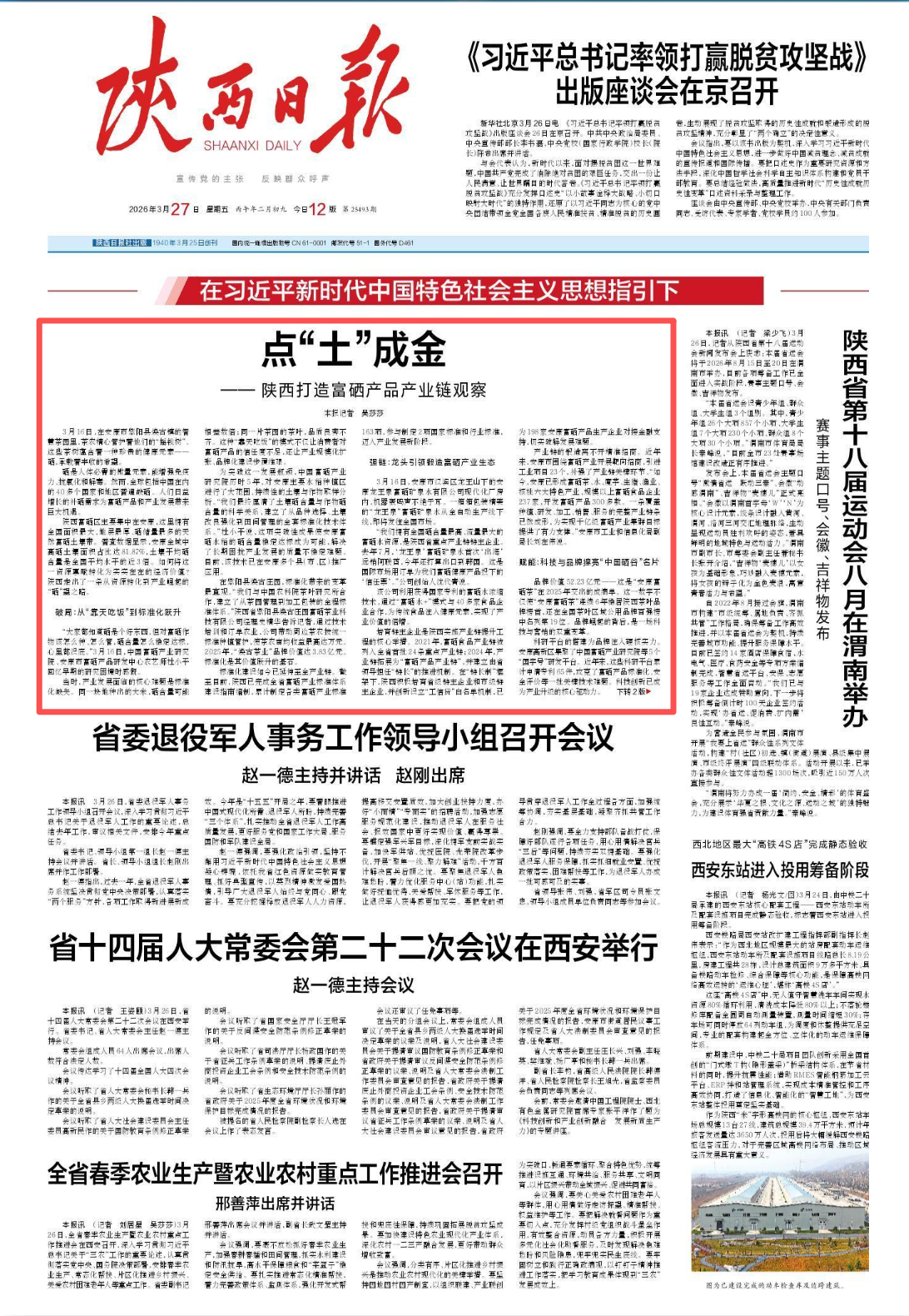 《陜西日報》丨點(diǎn)“土”成金——陜西打造富硒產(chǎn)品產(chǎn)業(yè)鏈觀察