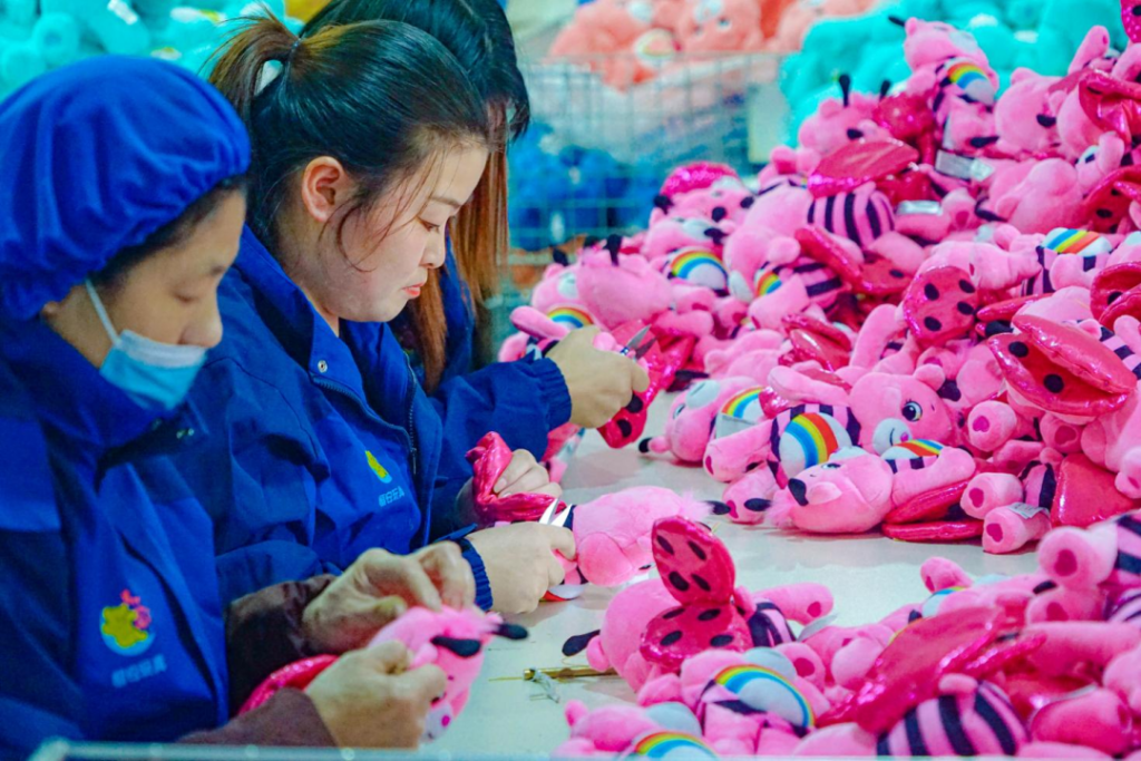 毛絨玩具是安康特色產(chǎn)業(yè)體系中的另一個(gè)重要代表。很多人可能不知道,目前安康已發(fā)展成為全國(guó)第四大毛絨玩具生產(chǎn)基地,獲評(píng)“中國(guó)毛絨玩具產(chǎn)業(yè)新都”。截至2025年底,安康全市累計(jì)建成毛絨玩具和紡織企業(yè)811家(點(diǎn)),吸納就業(yè)群眾超2.2萬(wàn)人,實(shí)現(xiàn)年產(chǎn)值100.21億元。企業(yè)日產(chǎn)能達(dá)到150萬(wàn)只,產(chǎn)品出口全球80多個(gè)國(guó)家和地區(qū)。