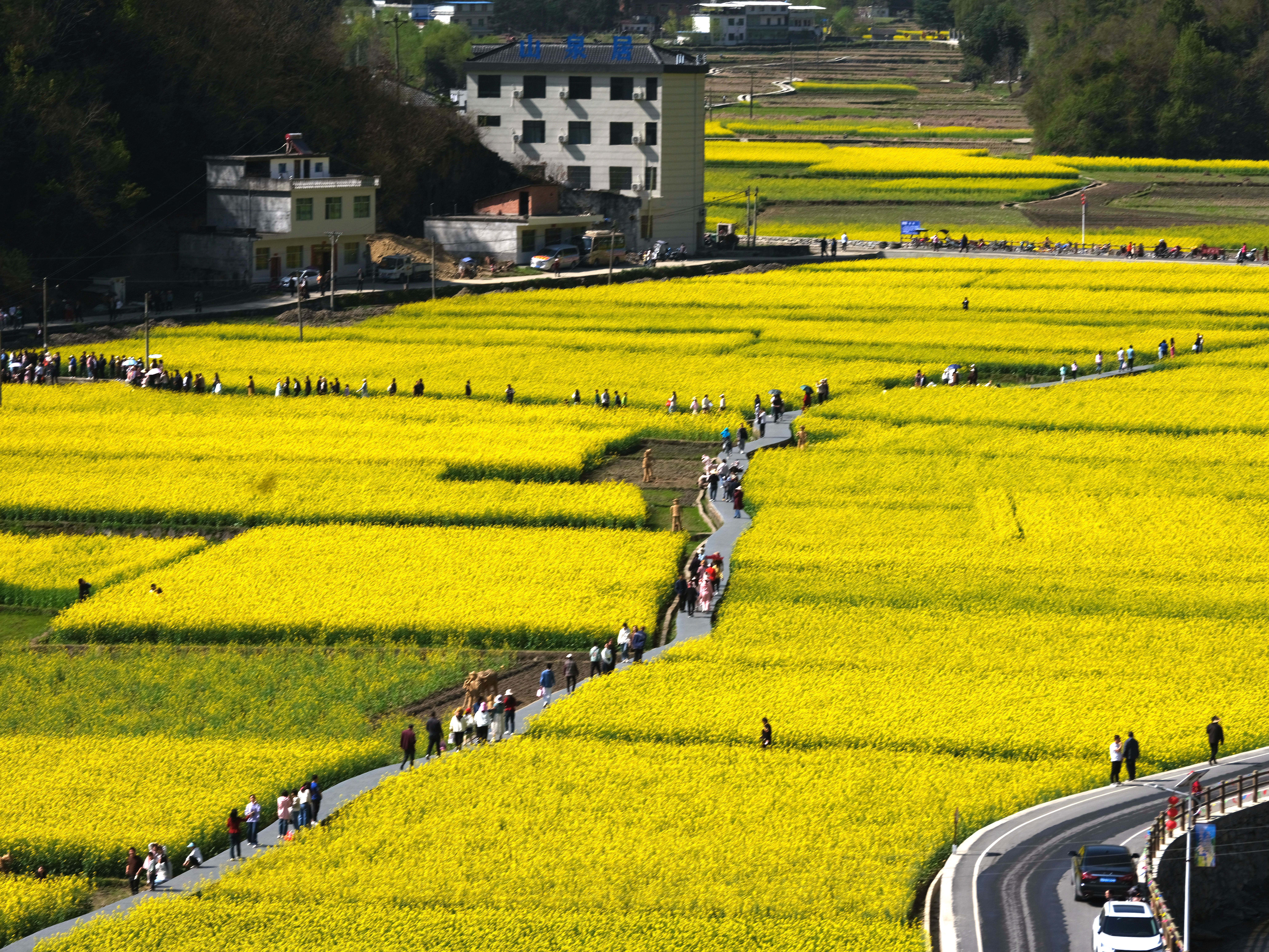 連日來,旬陽市仁河口鎮(zhèn)水泉坪3A級(jí)景區(qū)的近千畝油菜花競相綻放,金黃色的花海鋪展如畫,吸引了眾多游客前來踏青賞花。 潘定安 攝