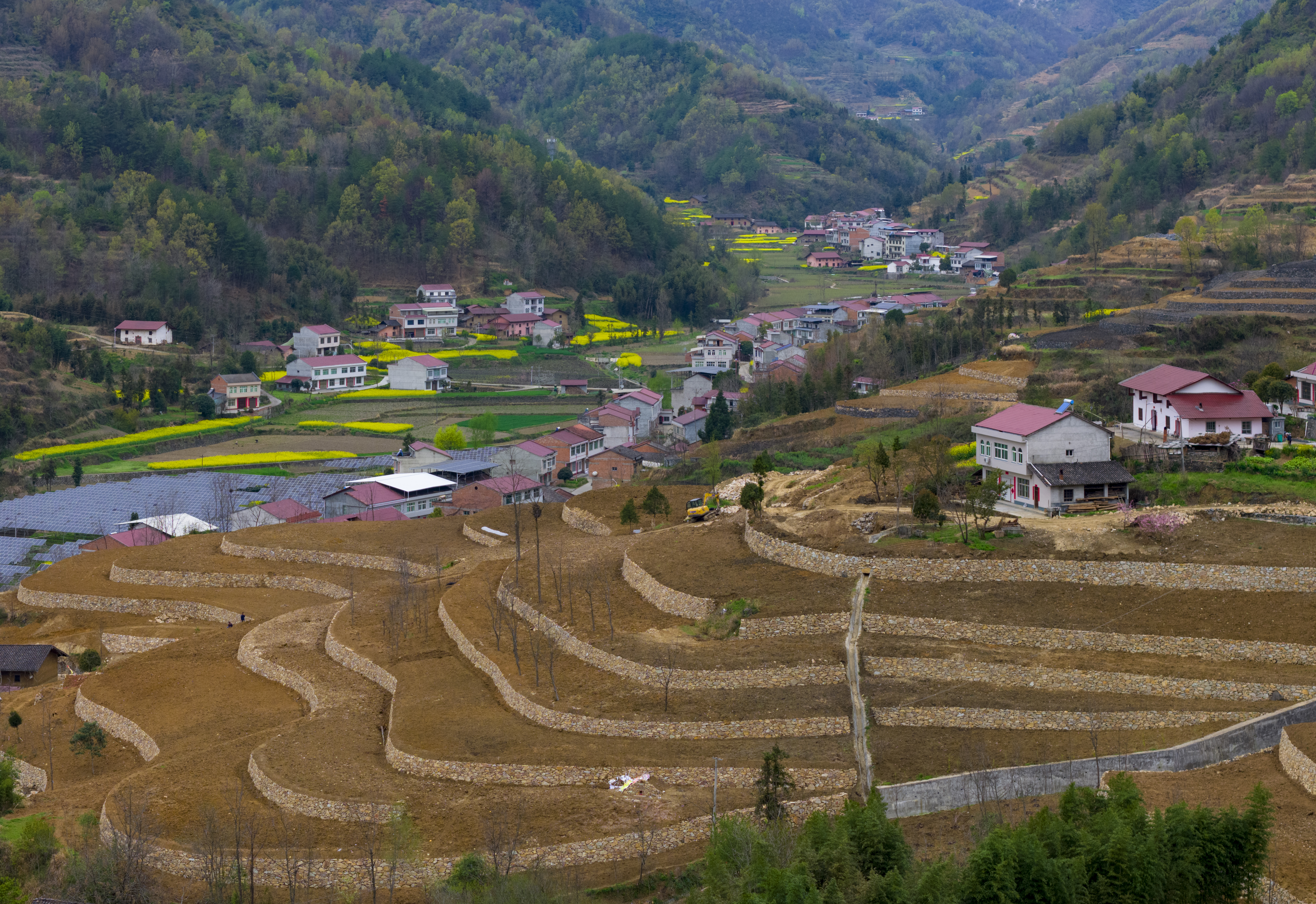 漢濱區(qū)大河鎮(zhèn)搶抓春耕有利時(shí)機(jī),組織實(shí)施坡改梯標(biāo)準(zhǔn)化農(nóng)田建設(shè),讓山間的“石坎坎兒”成為穩(wěn)定糧油增收的“金碗碗兒”。圖為該鎮(zhèn)興紅村連片320畝標(biāo)準(zhǔn)農(nóng)田建設(shè)一角。  陳均威 攝
