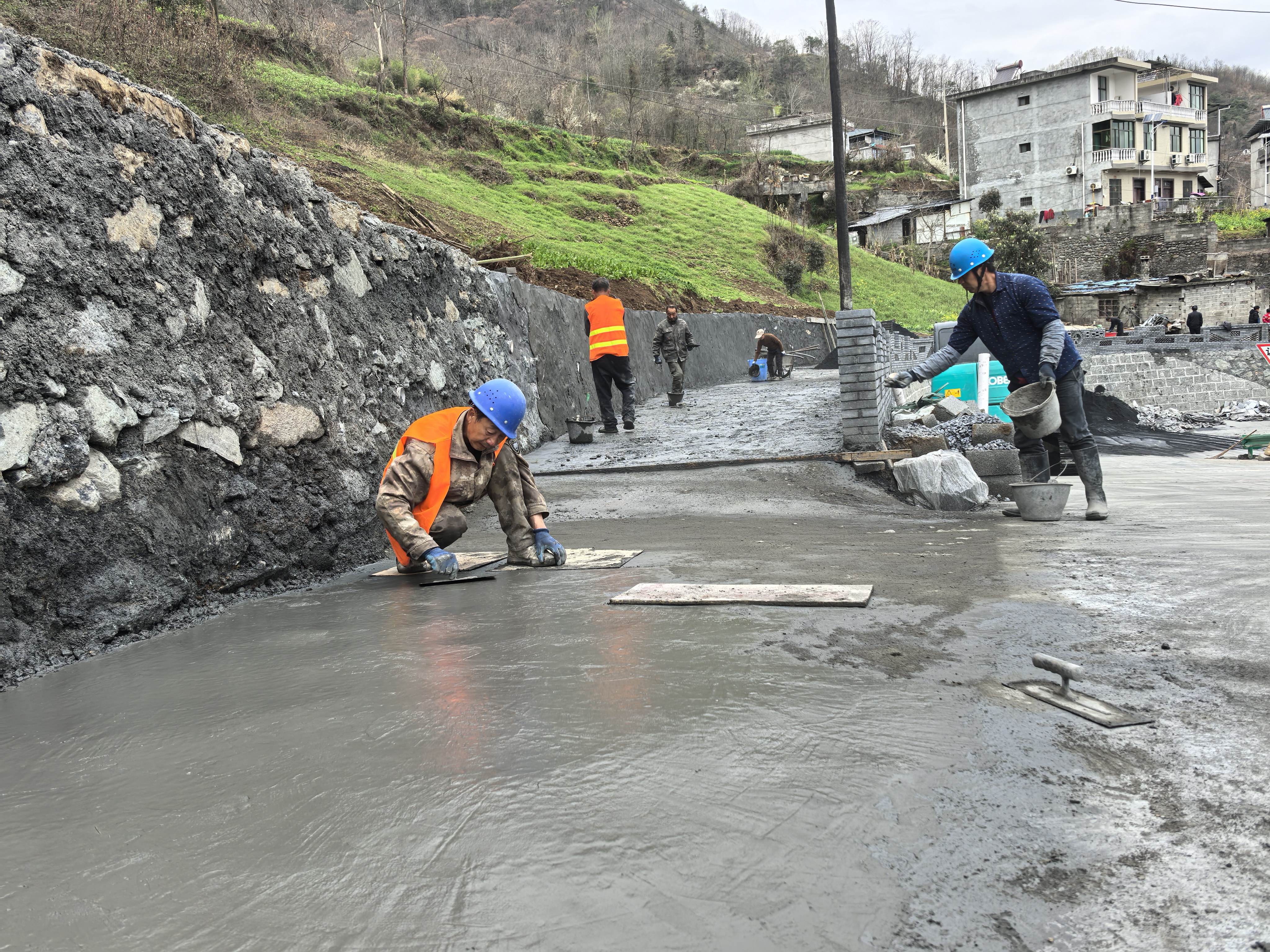 嵐皋縣城關鎮(zhèn)以農(nóng)村人居環(huán)境整治為抓手,爭取專項資金290萬元,對城關村28個城鄉(xiāng)接合部節(jié)點進行改造,提升鄉(xiāng)村顏值。目前,8個“口袋公園”和20個微景觀已基本建成,配套的景觀綠化、道路硬化正在加緊施工。圖為工人正在該村五組的一處節(jié)點施工。 張?zhí)毂?張山 攝