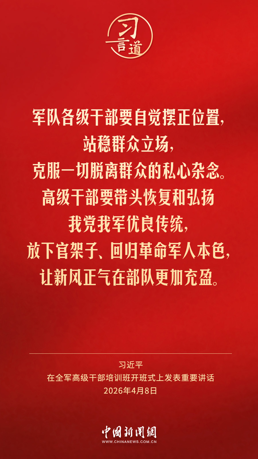 全軍高級干部培訓(xùn)班8日在國防大學(xué)開班。中共中央總書記、國家主席、中央軍委主席習(xí)近平出席開班式并發(fā)表重要講話。他強(qiáng)調(diào)——