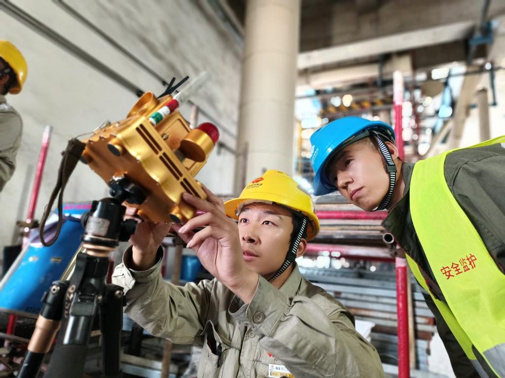2024年4月23日,中國核電工程有限公司的企業(yè)導師和項目負責人現(xiàn)場指導朱澳(左一)。(李海萁 攝)