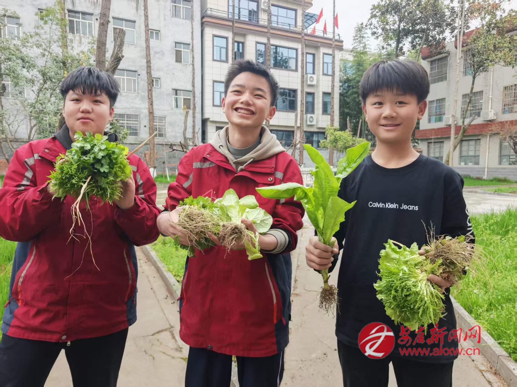 “看著自己翻過的土地,特別有成就感。”初一學(xué)生陳榮耀一邊擦汗一邊說,“在春天種上菜,就等著收獲了。”