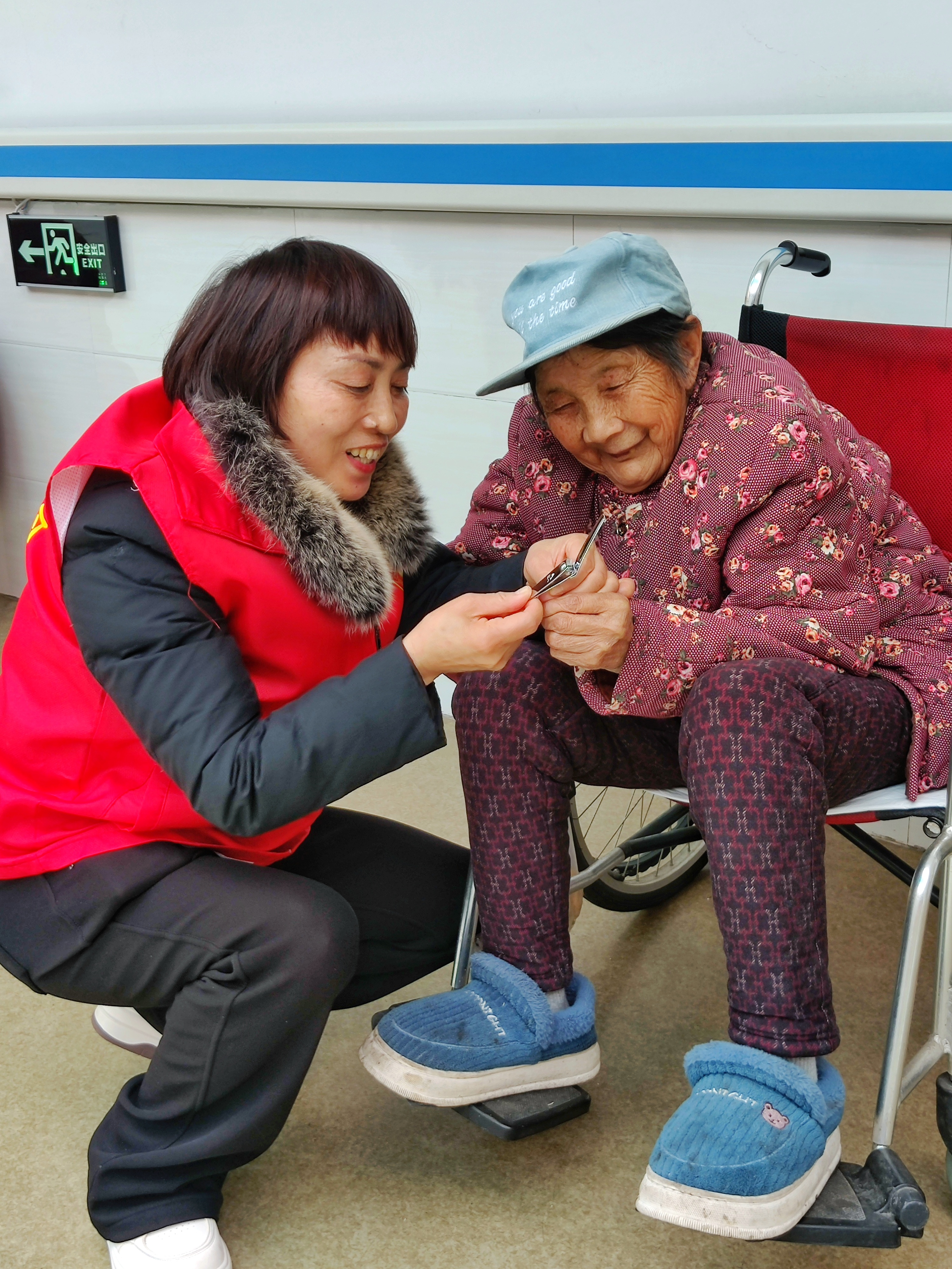 志愿者為老人修剪指甲