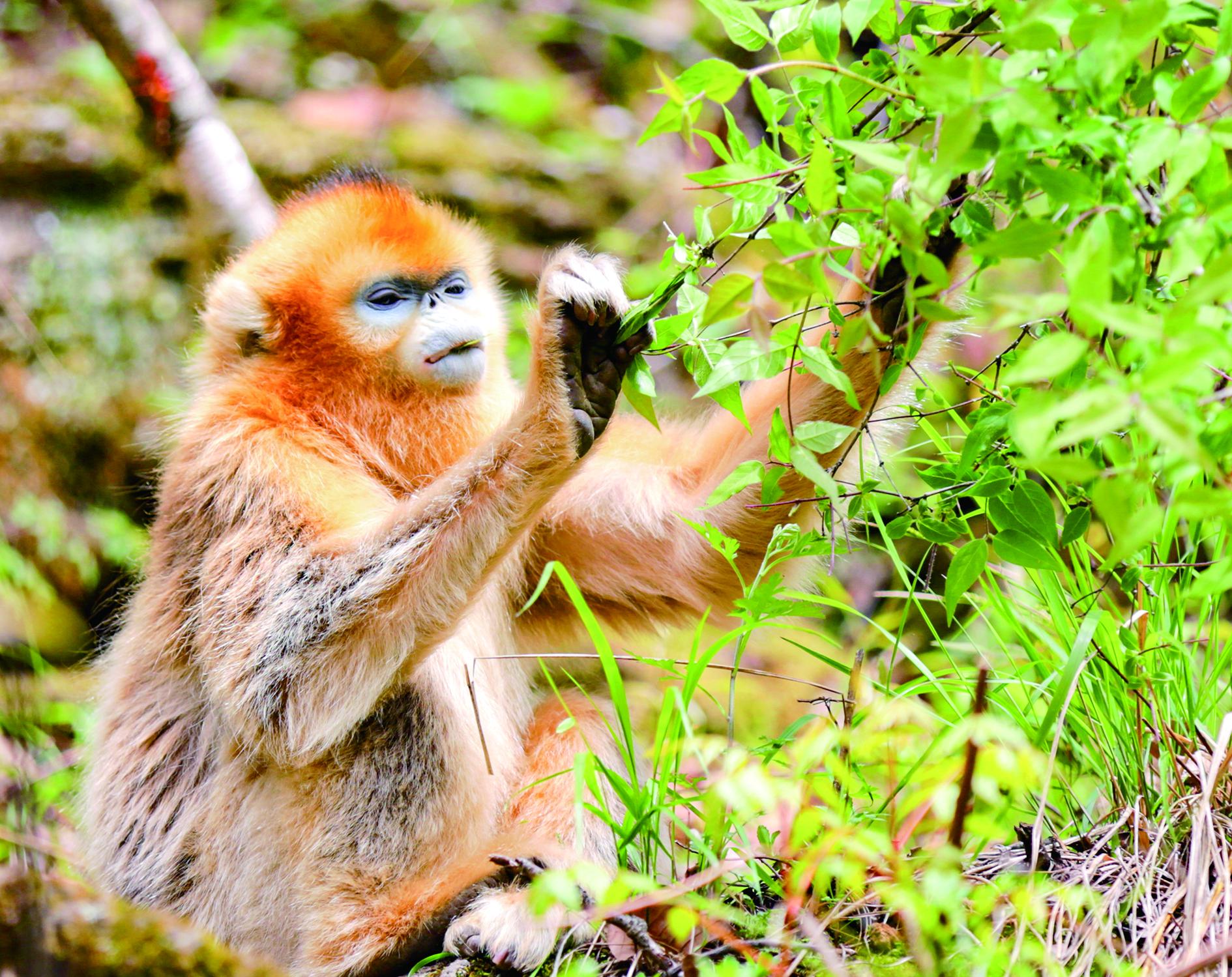 作為典型林間素食動物,金絲猴飲食結(jié)構(gòu)天然健康。日常主要取食樹葉、嫩枝嫩芽、山野花卉、野生果實(shí)、鮮嫩竹筍,冬季食物匱乏時(shí),也會啃食樹皮、樹根、堅(jiān)果充饑,極少捕食昆蟲、鳥蛋補(bǔ)充少量蛋白質(zhì)。其胃部特殊分區(qū)結(jié)構(gòu),可高效消化植物粗纖維,適配山林天然食源。